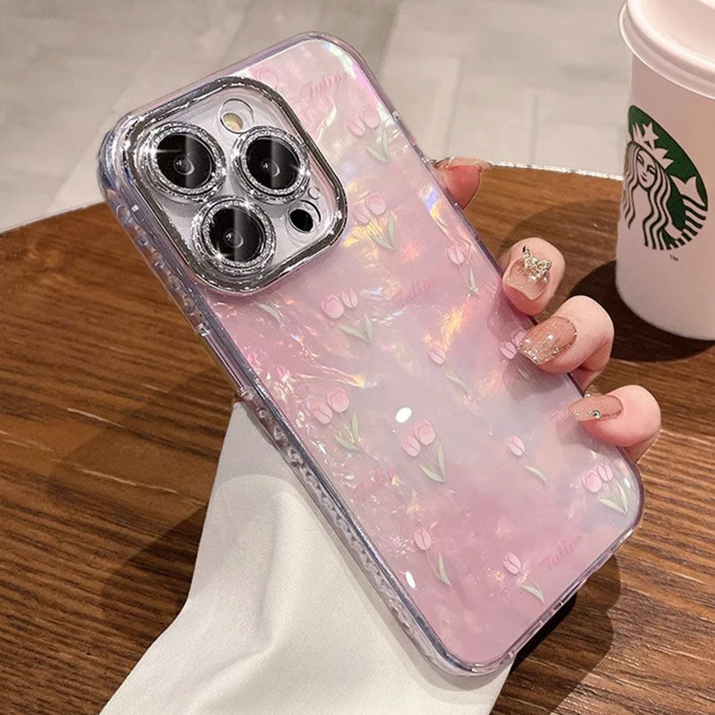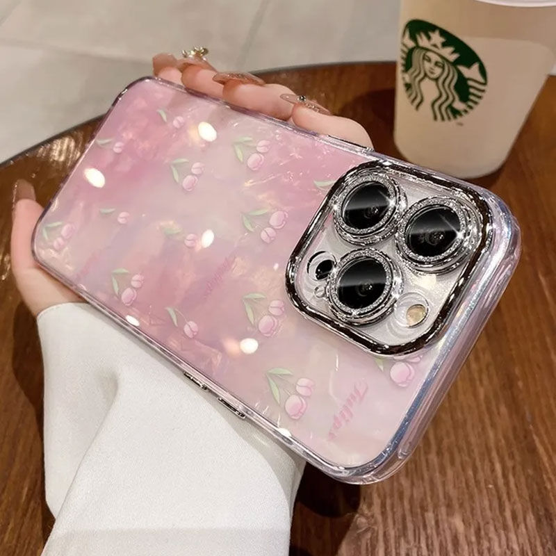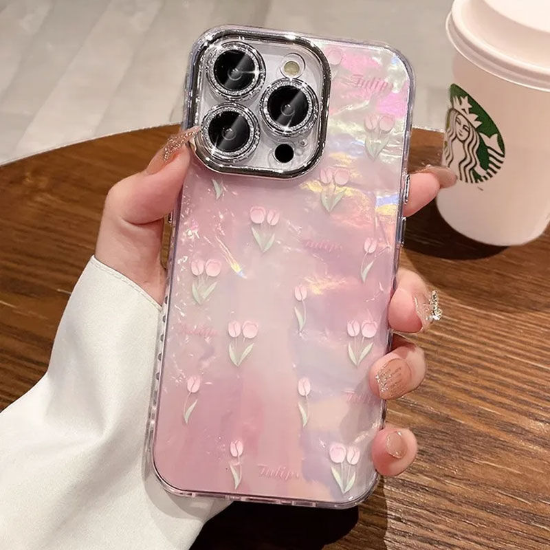 Parlak arka yüzeyi ve üzerinde li lale çiçeği işlemeleri ile telefonuna renk kat.
