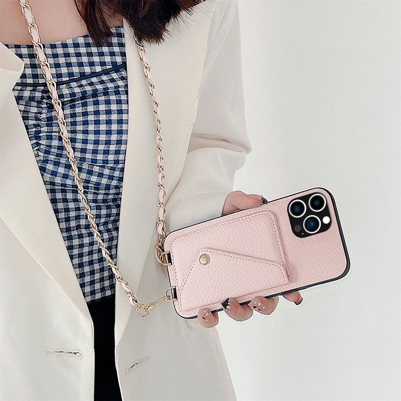 Apple - iPhone 13 Pro Zebana Boyun Askılı Deri Kılıf - Rose Gold