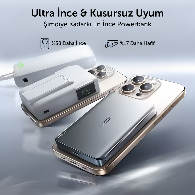LISEN 4’ü 1 Arada Ultra Slim M-Safe Powerbank, modern tasarımı, yüksek kapasitesi ve çok yönlü şarj özellikleriyle günlük kullanım ve seyahatler için mükemmel bir çözümdür. Sadece 1.27 cm inceliğinde olan bu taşınabilir şarj cihazı.