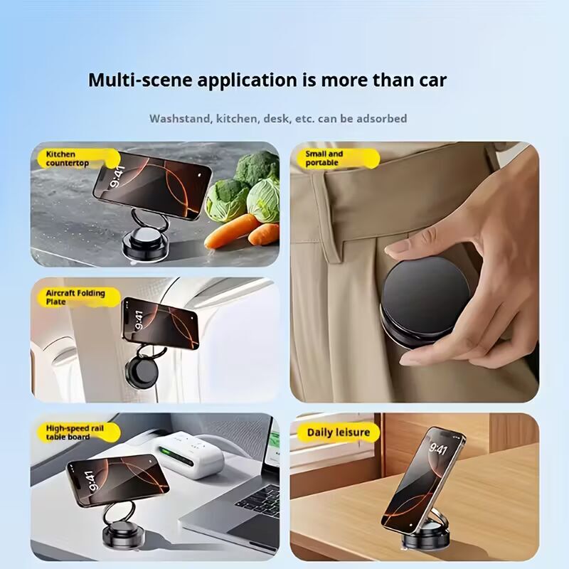 Çift Taraflı Vakum Emme ile Esnek Montaj Vakum emme tasarımıyla, bu telefon tutucu çift taraflı yapışma sağlayarak çeşitli yüzeylere güvenli bir şekilde yapışır. İster aracınızın ön paneline, ister camına yerleştiriyor olun, evrensel kullanım için sağlam tutuşuna güvenebilirsiniz.